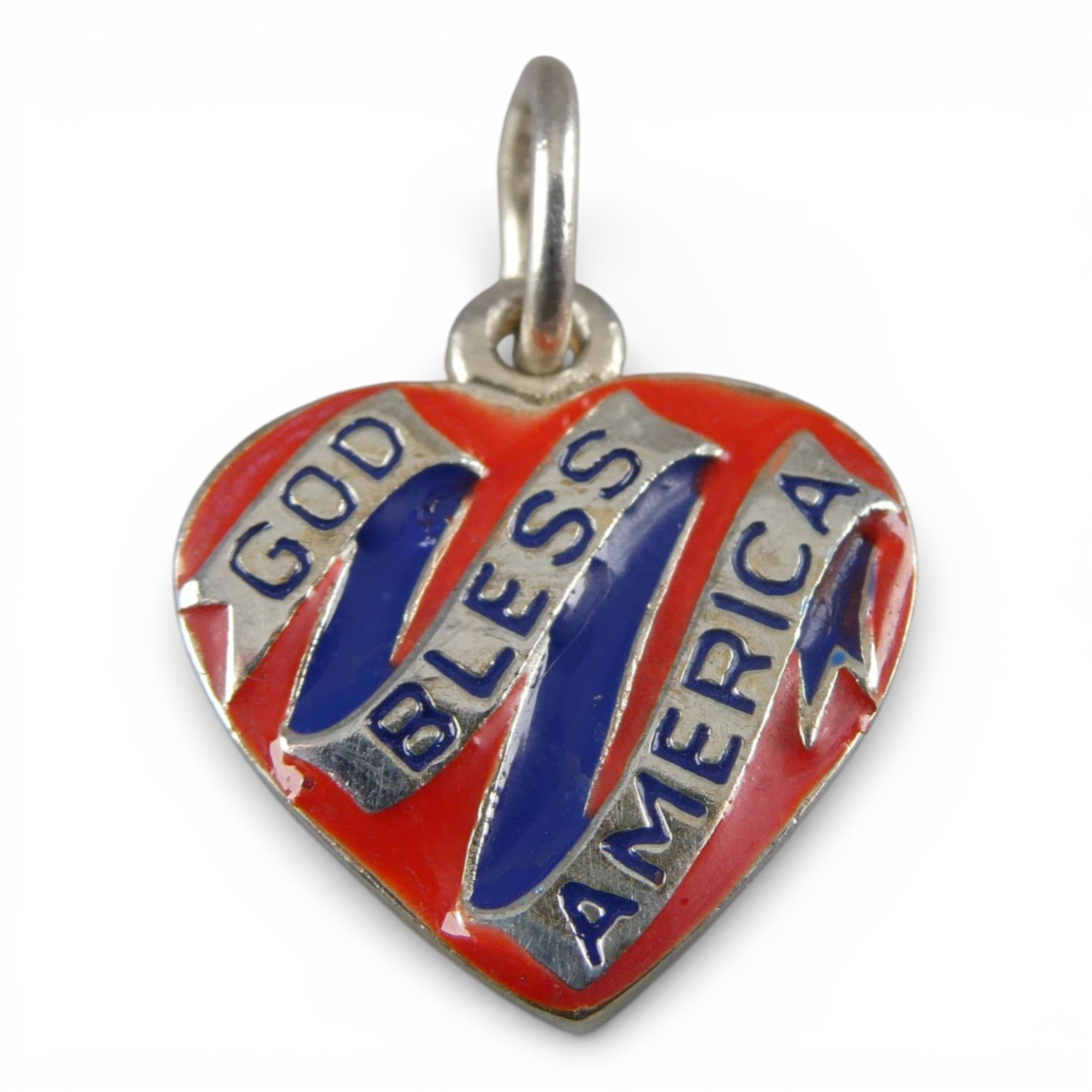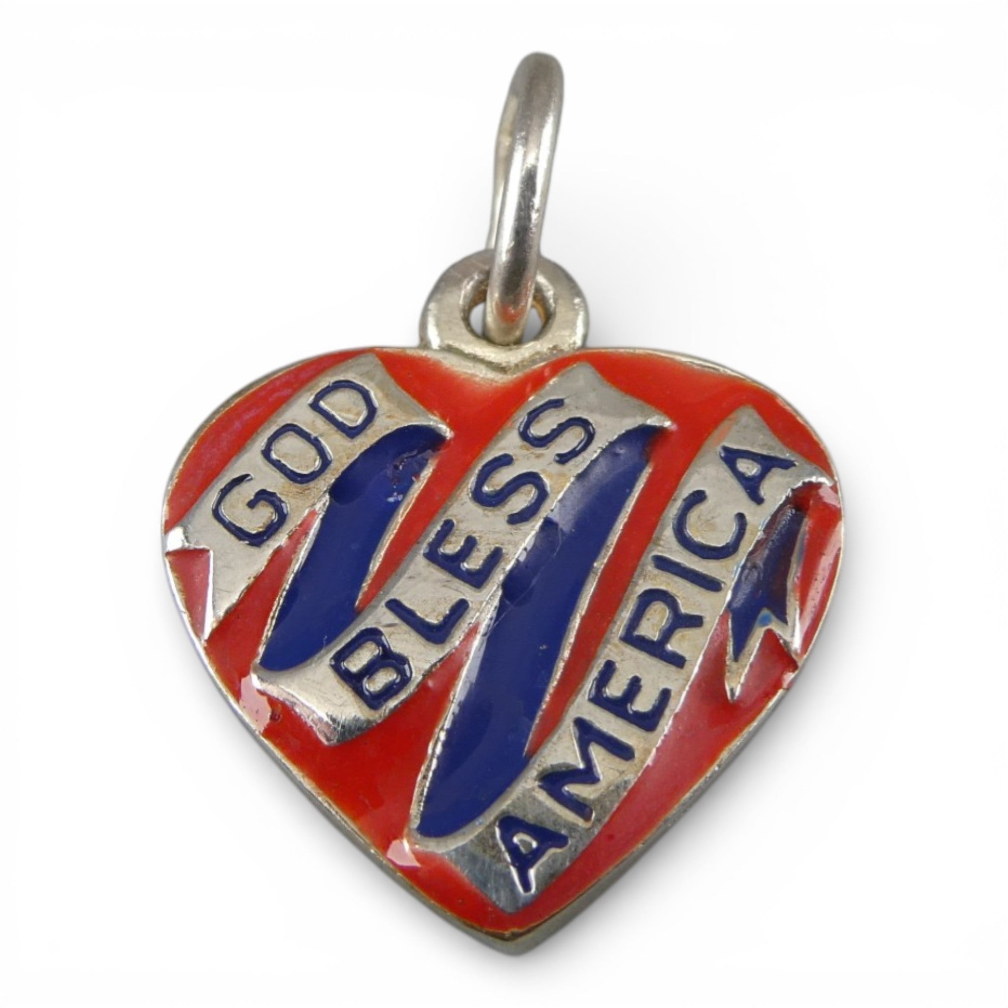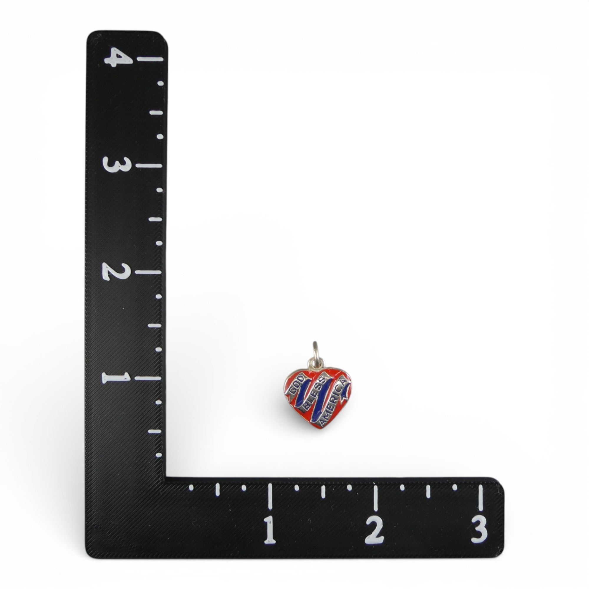 Sterling Silver & Enamel God Bless America Heart Charm USA Red Blue Patriotic