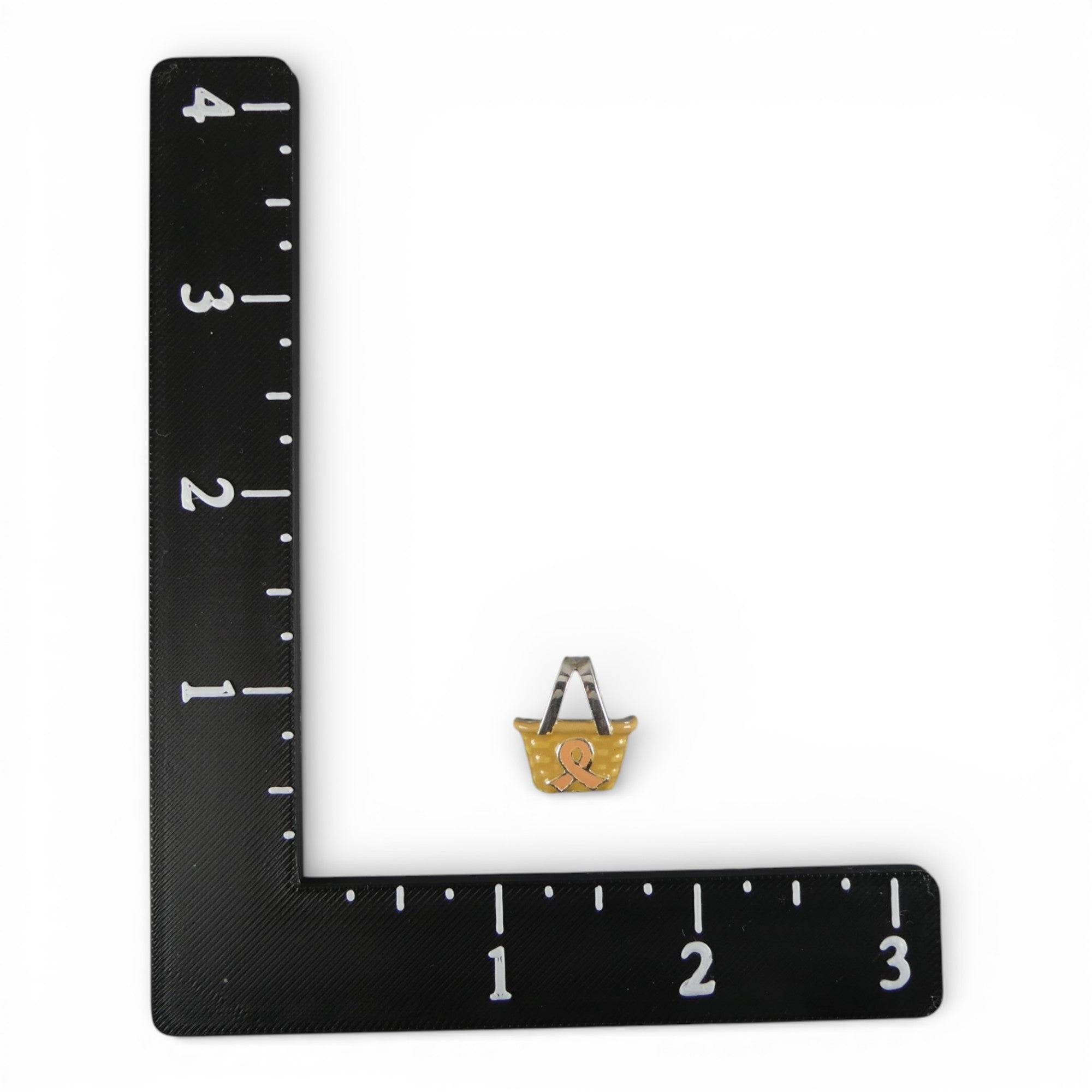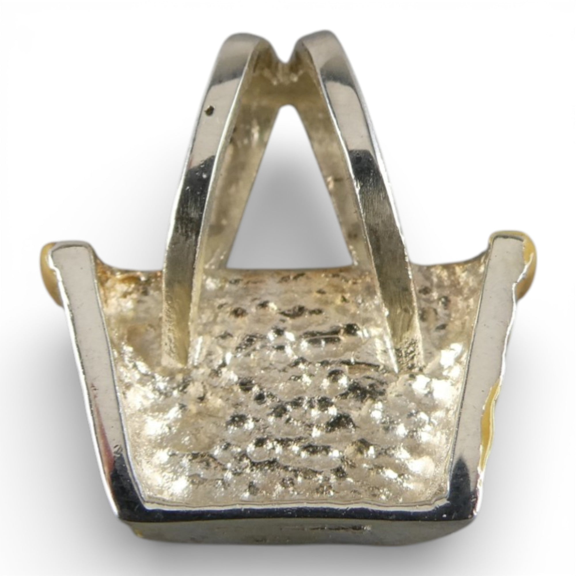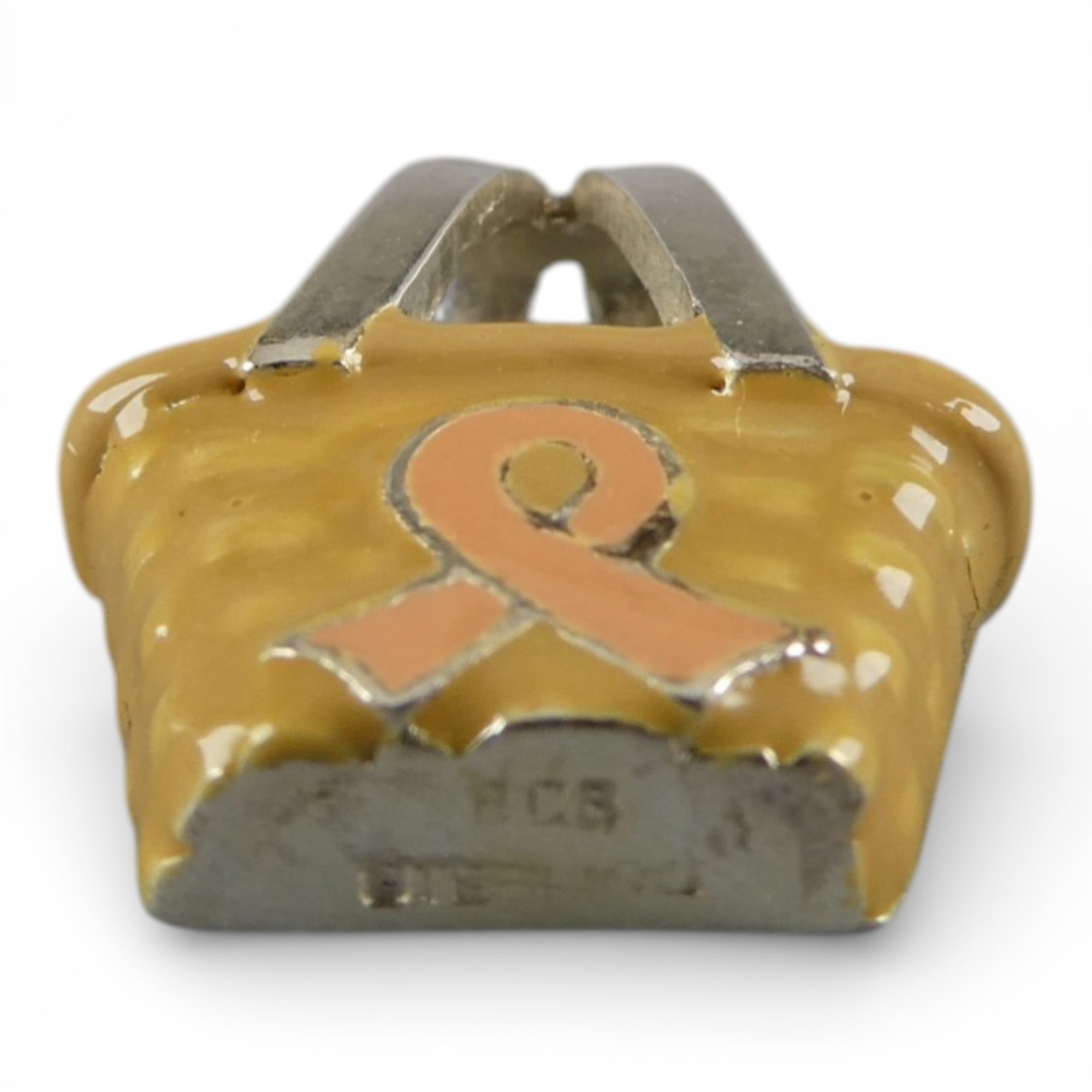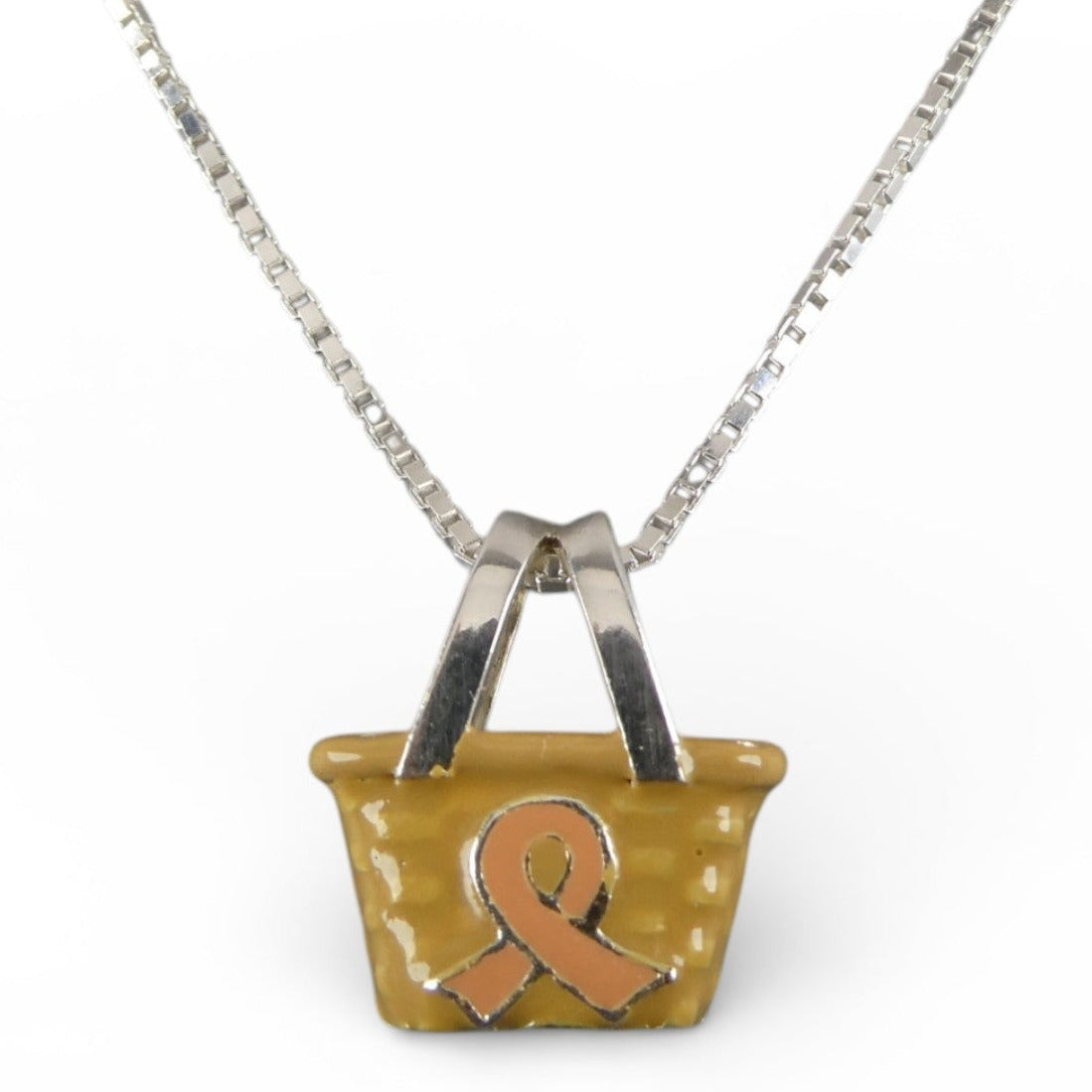Sterling silver and hand-enameled Breast Cancer Awareness Basket Pendant or Charm. Marked BCB for Brown County Baskets and Sterling. Vintage and in never worn condition.