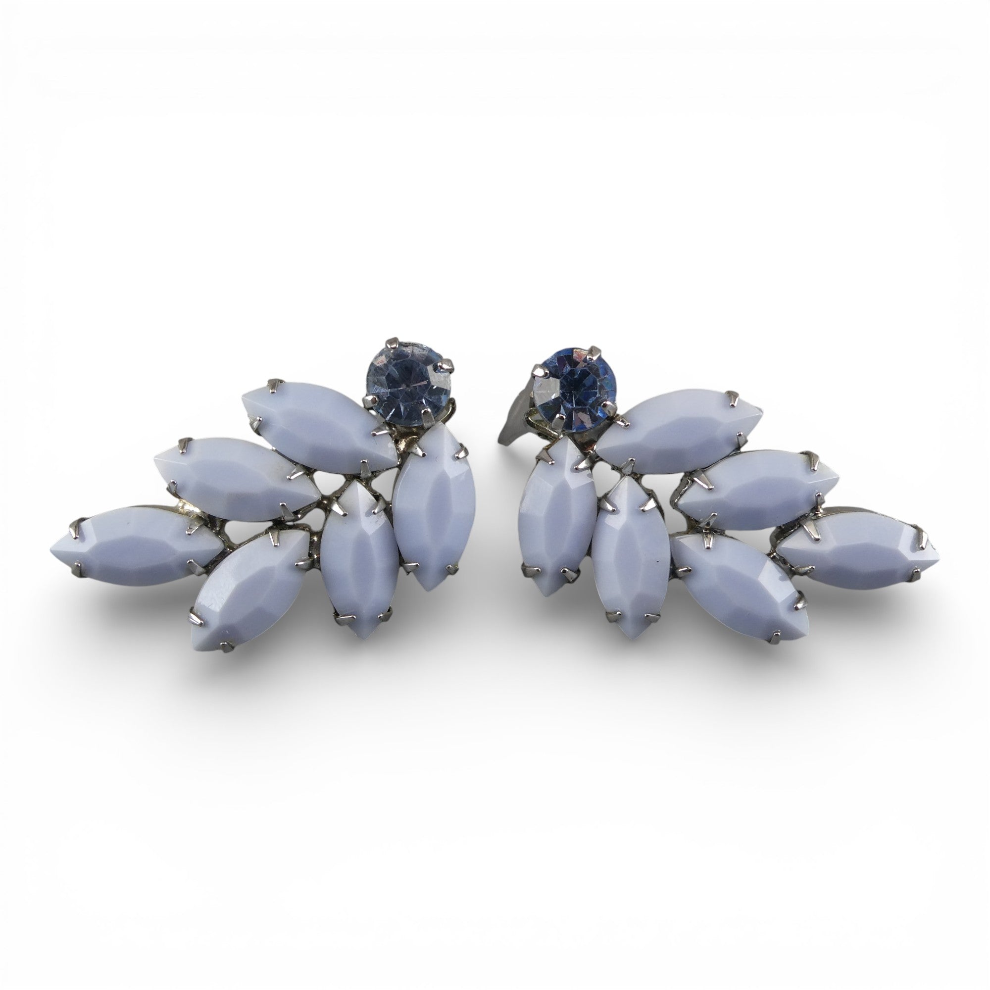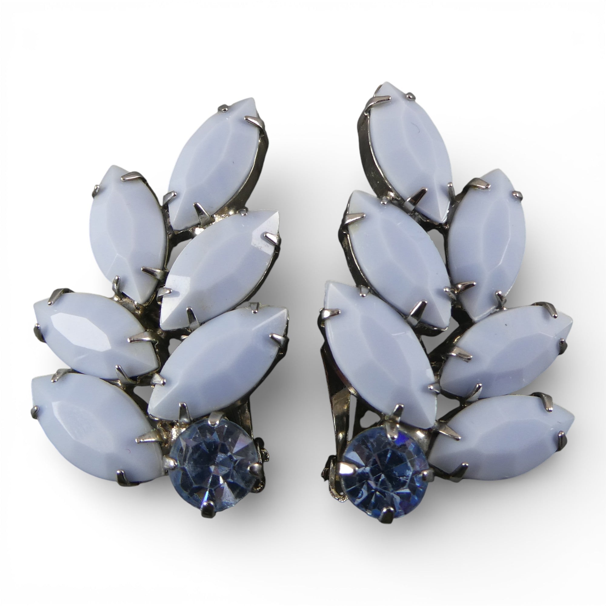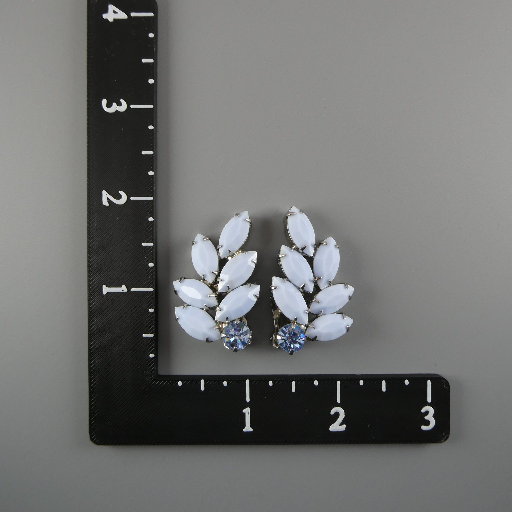 Vintage Weiss Blue Milk Glass & Rhinestone Clip On Earrings