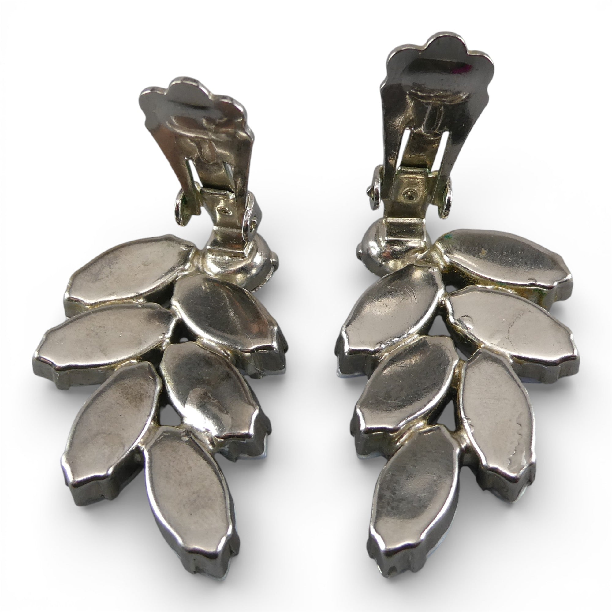 The soft blue milk glass provides an elegant contrast to the brilliant rhinestone accent, creating understated sophistication. Clip-on style ensures comfortable wear without pierced ears. A distinguished addition to any vintage jewelry collection or perfect for special occasions when you want classic glamour with historical significance.