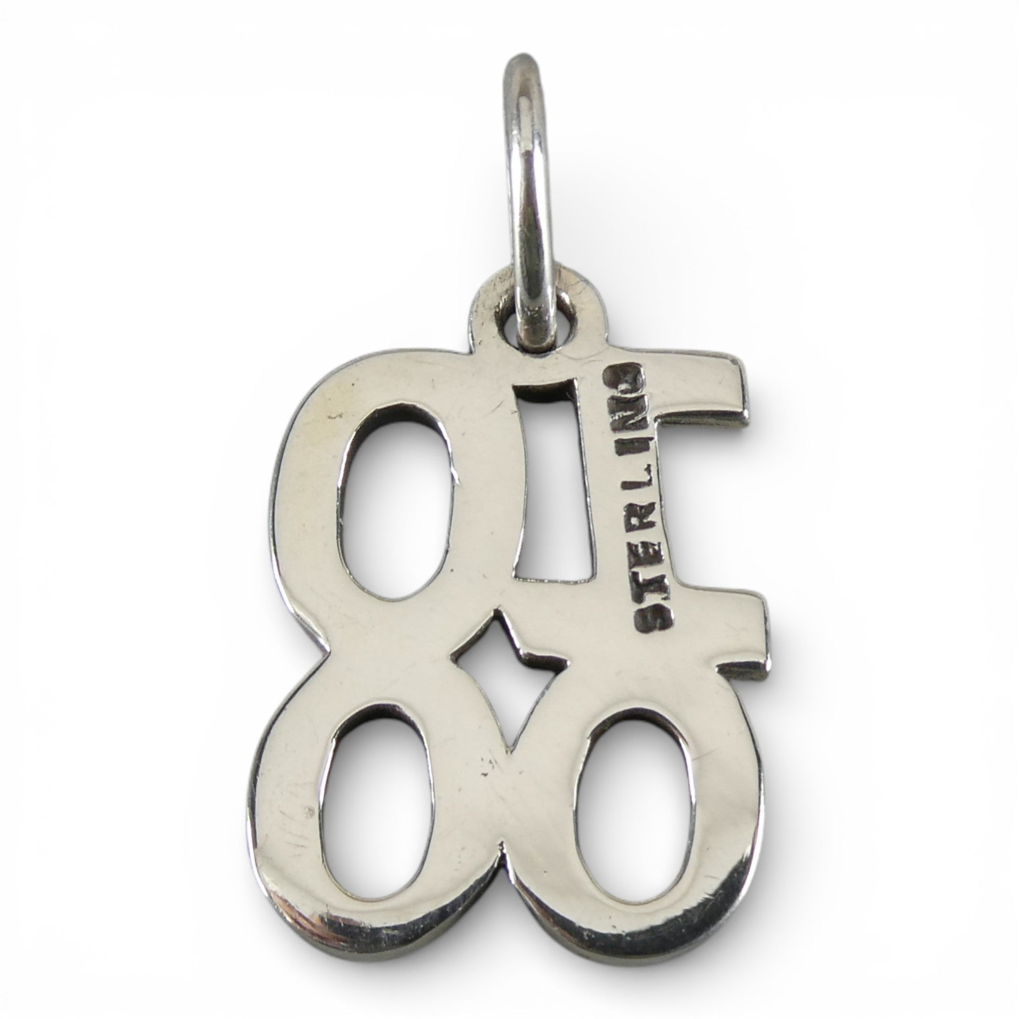 This sterling silver 1000 charm is signed "Sterling" on the back. Made by Brown County Silver. Vintage but in brand new, never worn condition.