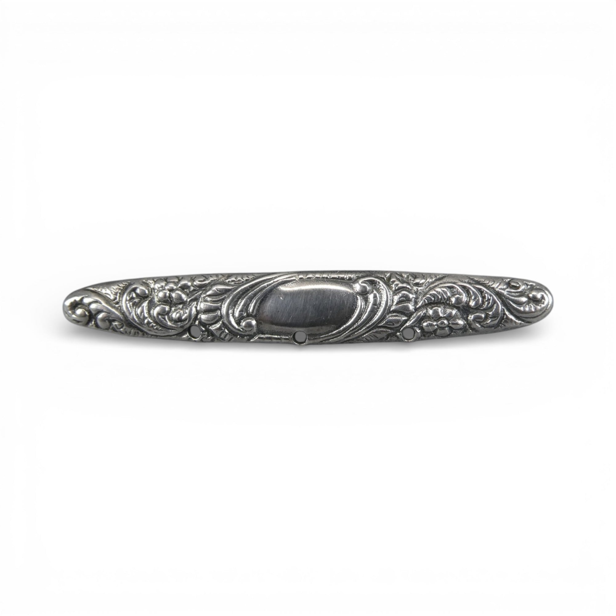 This antiqued sterling silver, engravable Victorian Charm Pin accommodates up to three charms. Pins are easily attached to blouses, sweaters, jackets, jeans and other apparel and accessories.